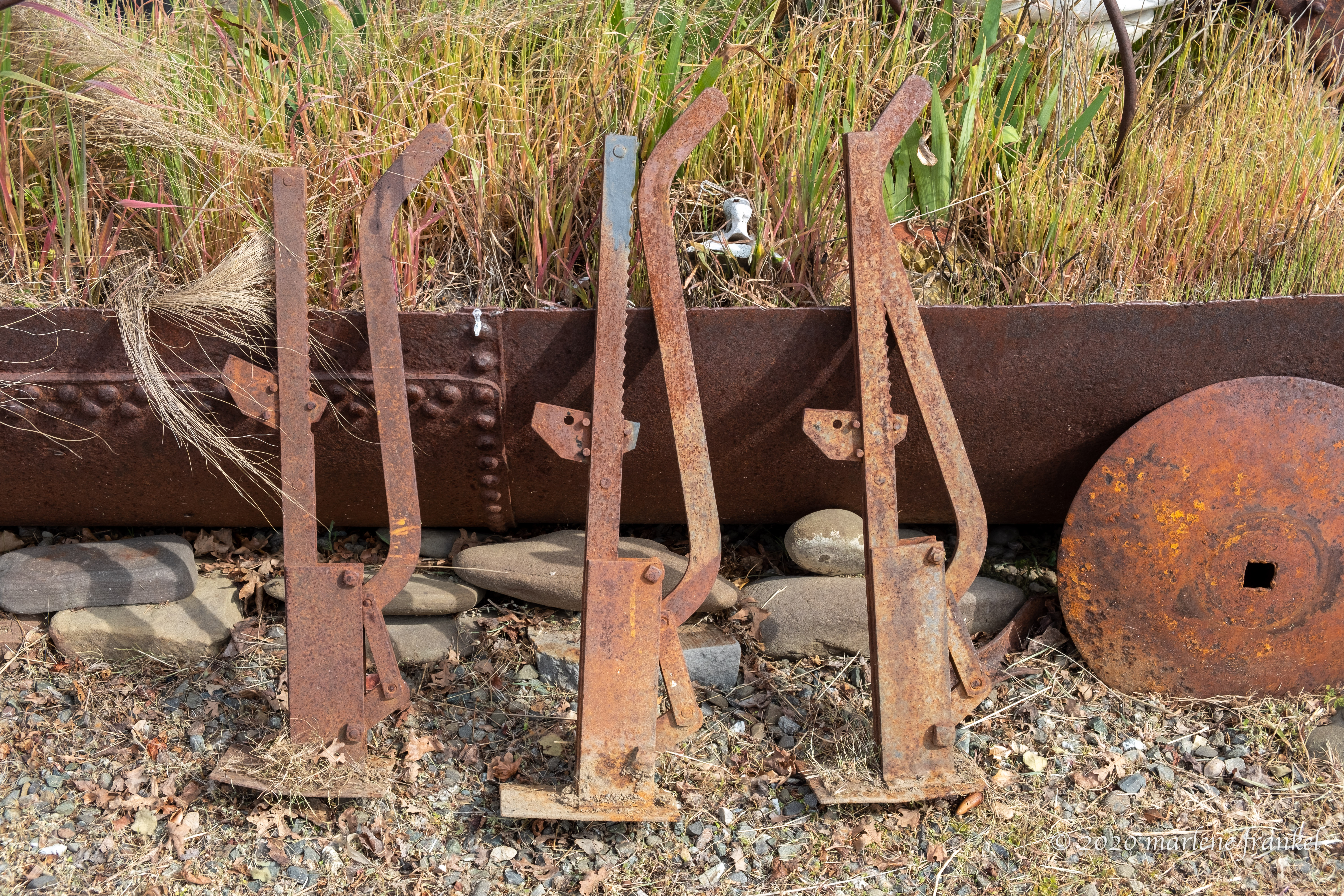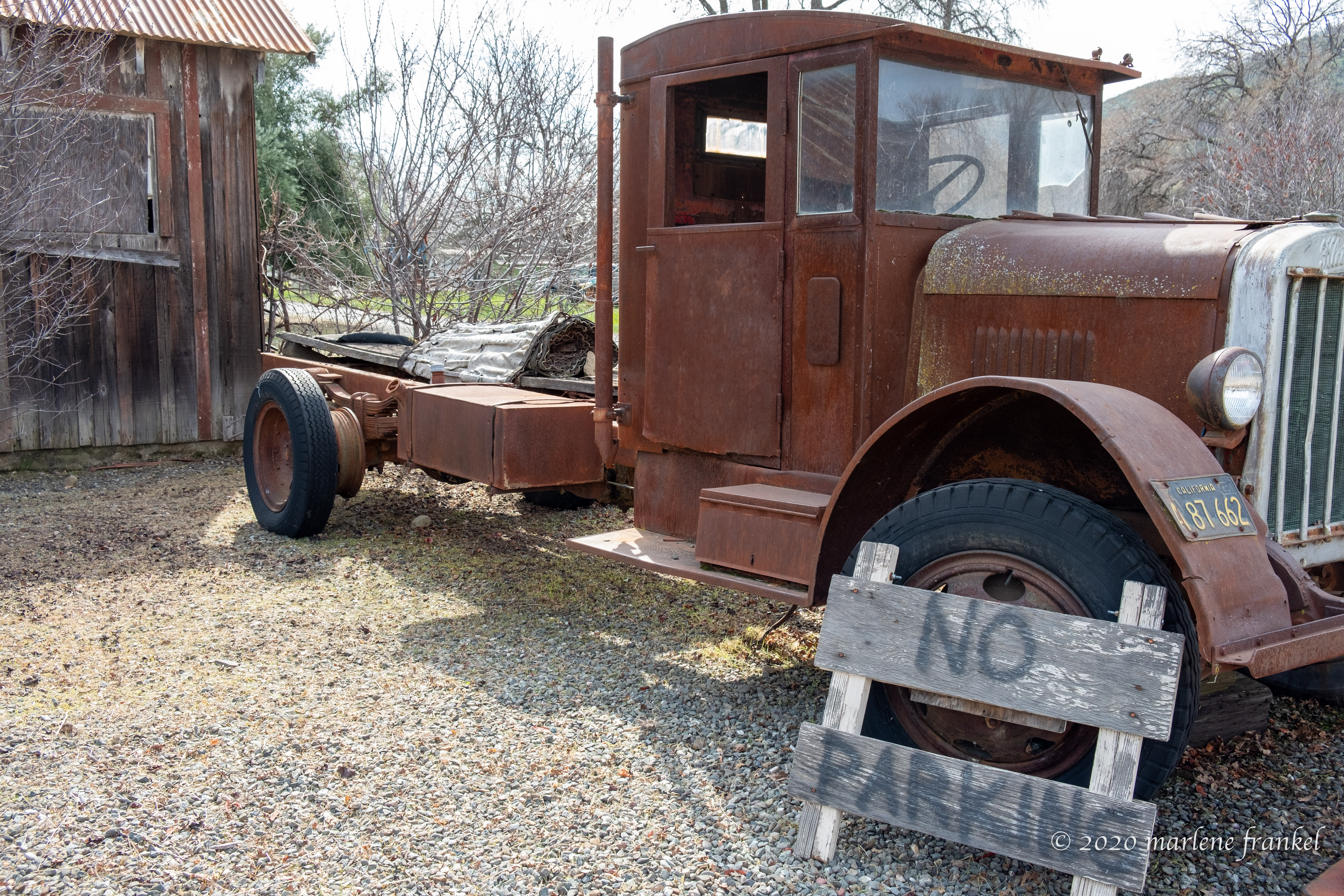 I found the No Parking sign ironic, the flatbed wagon a forerunner for a Ram Truck, some rusty parts that looked like cats, a face tilt, and a surry without the fringe on the top!