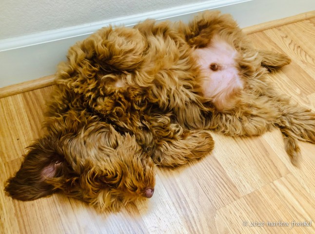 I haven’t decided on a permanent groomer. With CoVid19 it is hard to meet anyone face to face. And smart as Charlie is he can’t talk. So I depend more on recommendations and reviews. My neighbor acts as a “grandparent” to a golden doodle in the neighborhood so I asked where Buster got his haircut. Buster is a standard golden doodle with very curly poodle-type wool hair with hair shaved way short for the summer. Not a match for Charlie who has long, fleece-like hair. But the groomer also had good reviews on Yelp. One price, one hour, one dog at a time, and no cages got me to make the appointment. I brought a paper with my instructions, and photo to the appointment. He looked at it briefly and handed it back to me. The groomer is close so I left Charlie and went home. Returned in one hour and the puppy cut was done. So what is the hesitation to return? My instruction sheet was given a cursory glance. I said not to cut Charlie’s eyelashes, and they were cut. I know, they grow back. His sanitary trim was only so so. I was given a discount since this was only a puppy cut and only facial hair was cut. So I will continue to ask around for Labradoodle groomer recommendations.