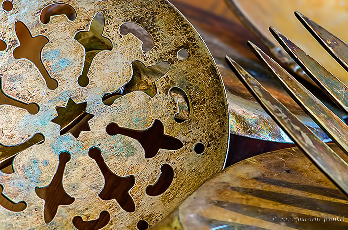My inspiration for this photograph started in my photography class. I needed to create a photo with the theme of kitchen. Items from my mother-in-law were recently sent to us. I placed these tarnished serving pieces on a piece of glass and watched for shadows. Pleased with the result. I entered this photo in an online contest and was selected as the week’s photo.