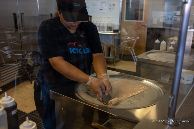 Creating rolls of handmade ice cream