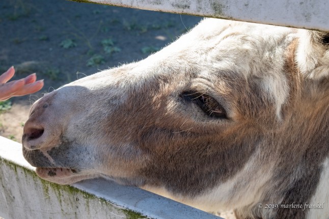 I see a cute sign post with a donkey, and then I spot donkeys. I approach animals carefully, but one donkey was particularly friendly. Almost called her such a good puppy. A natural mistake given my situation.
