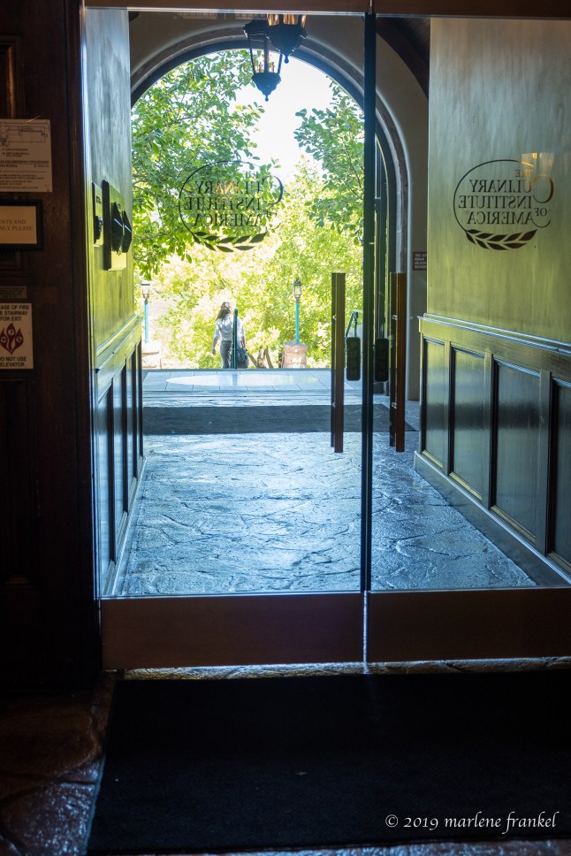 Last place on our road trip was the Greystone Cellers. This is home to the CIA School. Interesting history. The building was impressive, but the view overlooking the vineyard was difficult to capture. Trees blocked the view. How rude! And then there is the parking lot to contend with. Not to mention the heat.