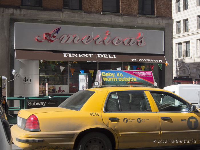 Food is everywhere. Katz’s Deli, made famous with the saying, “Senda Salami to your boy in the Army”, The Seinfeld scene, “I’ll have what she’s having!”