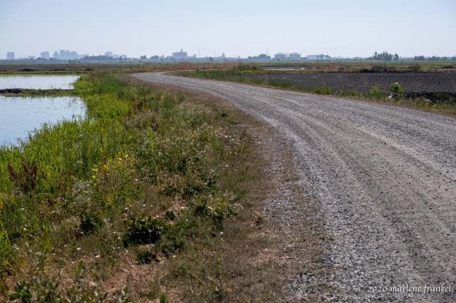 3,700 of the 16.000 acres have been transformed into a wetlands. The summertime dirt road is easy to navigate. Restored wetlands demonstrates “leading lines”