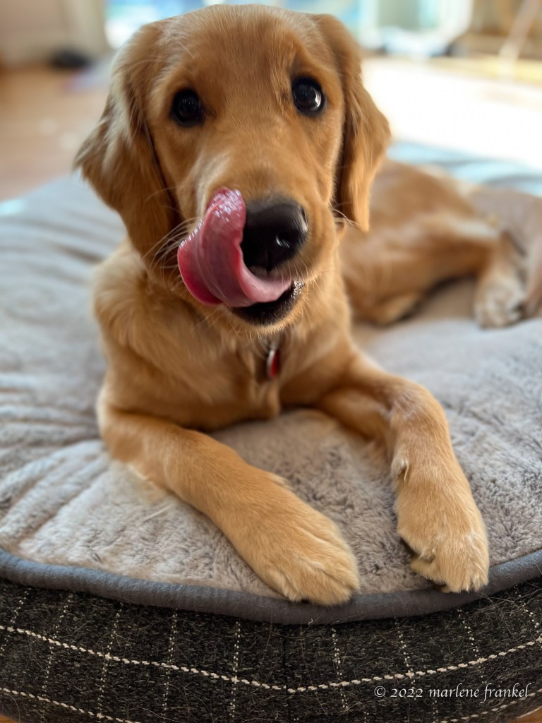 Nearing one year of age, Charlie now attends class with the “gifted” pups training to be CCI (Canine Companions for Independence) dogs. Sometimes this works, and sometimes not so much. Skateboarders, cyclists, and motorcycles are triggers (Puppy training language). He was so alert last week, that when I asked for a paw he followed the instruction with his eyes on the road. It was funny to watch but frustrating to teach. In this new 6 feet separation society when you take dogs in public you may not want to let anyone pet your dog. So to be polite, you can say, “Please don’t pet my dog, but if you want he can wave to you.” Giving a paw is the first step in teaching dogs to wave. Good adaptation for the pandemic. Right?