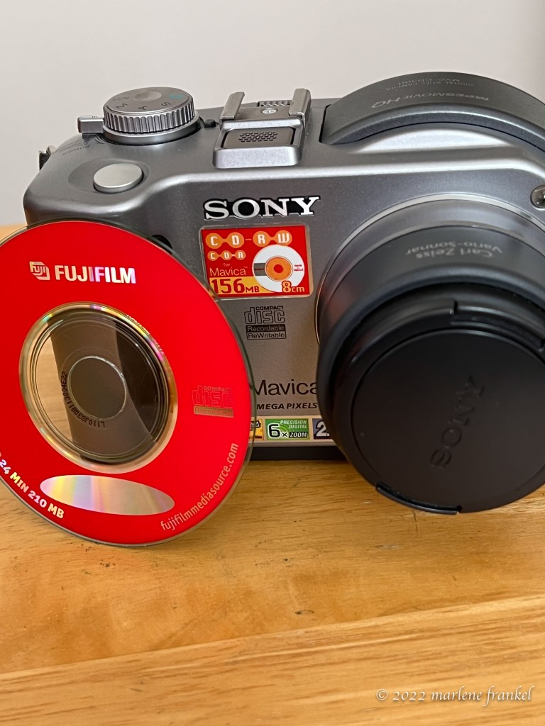 My first connection with digital came with my Sony CD Mavica, 3.3 mega pixel camera. Cute, compact and it wrote the files to a cd, but oh so slowly. I took a photo of my toddler granddaughter and she was in the next room by the time the file had recorded.