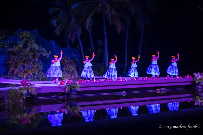 Kalua pig roasted in an imu oven starts the ceremonial tradition. Followed by song and dance show. Not to easy to capture. I used my Fuji with a 35mm f1.4 lens and we had good seats!