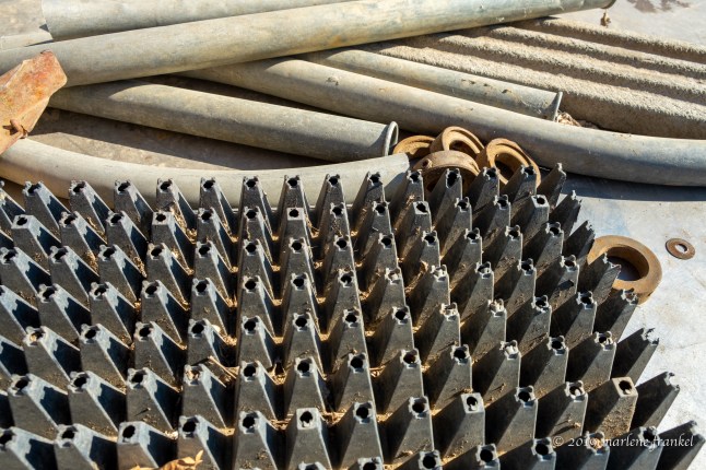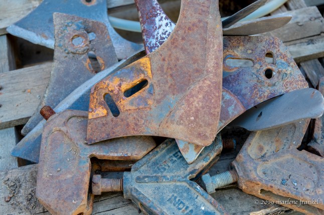 I found the No Parking sign ironic, the flatbed wagon a forerunner for a Ram Truck, some rusty parts that looked like cats, a face tilt, and a surry without the fringe on the top!