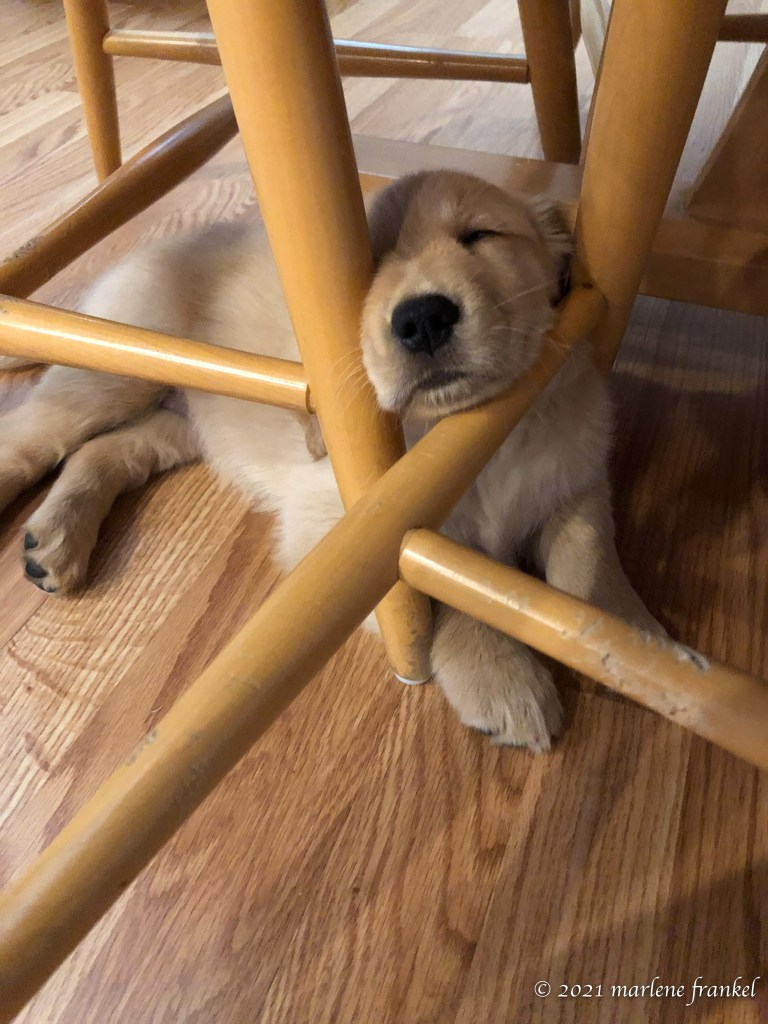 For a Golden Retriever, Moxie is a petite pup. She weighs in at 34 lbs. at 8 months. She is about 20 pounds lighter than one of her sisters. I have been dealing with her sensitive stomach, and it seems we have a couple of good weeks, and then I am back to square one. I enrolled in a puppy care club, and when I last tried to make an appointment for her acute tummy issue, the first available time was over three weeks away. As with all things CoVid, I found out that the hours and staff have been reduced due to staffing shortage in veterinarians. This is not adequate care so I will be looking for a new vet. Luckily, I have Golden Retriever friends, and I sought their advice. The “great resignation” attributed to CoVid is shaping our life.